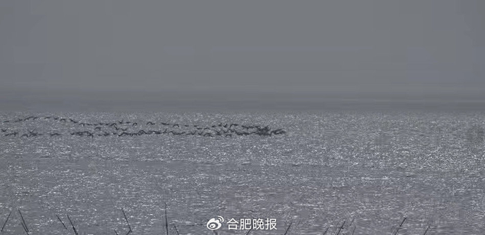 #合肥摄影师捕捉大雁贴水北飞瞬间# #大量北归候鸟停歇巢湖#