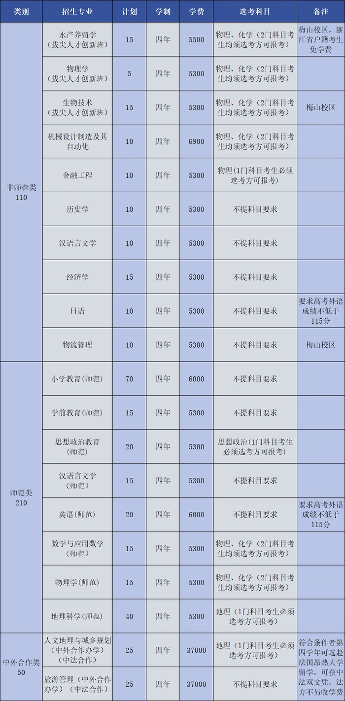 2026年招生计划数为370名,分为非师范类、师范类和中外合作类,具体招生专业、计划数及选考科目要求如下: