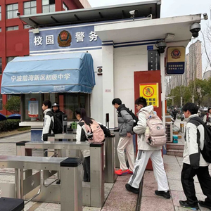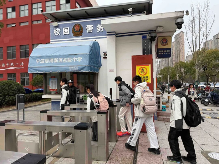宁波前湾新区初级中学学生从容走进校园。