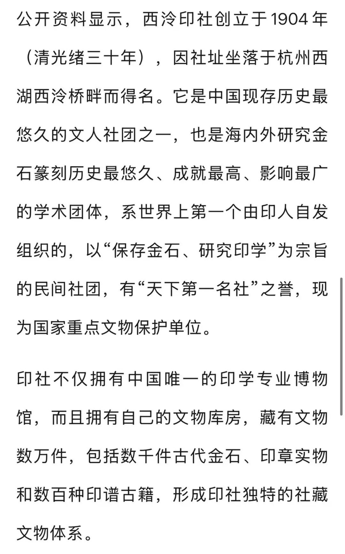 据了解,被网友误读的这块牌匾,其上“西泠印社”四个行书大字,出自该社第四任社长沙孟海先生之手。