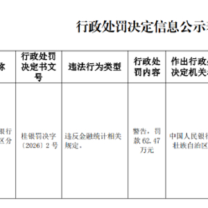农发行广西壮族自治区分行被罚62.47万元:违反金融统计相关规定 金融一线 03.0620:43 关注 3月6日金融一线消息,据中国人民银行广西壮族自治区分行行政处罚决定信息公示表显示,中国农业发展银行广西壮族自治区分行因违反金融统计相关规定,被警告,罚款62.47万元。