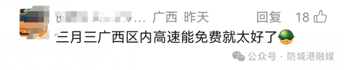“三月三广西区内高速能免费就太好了。”