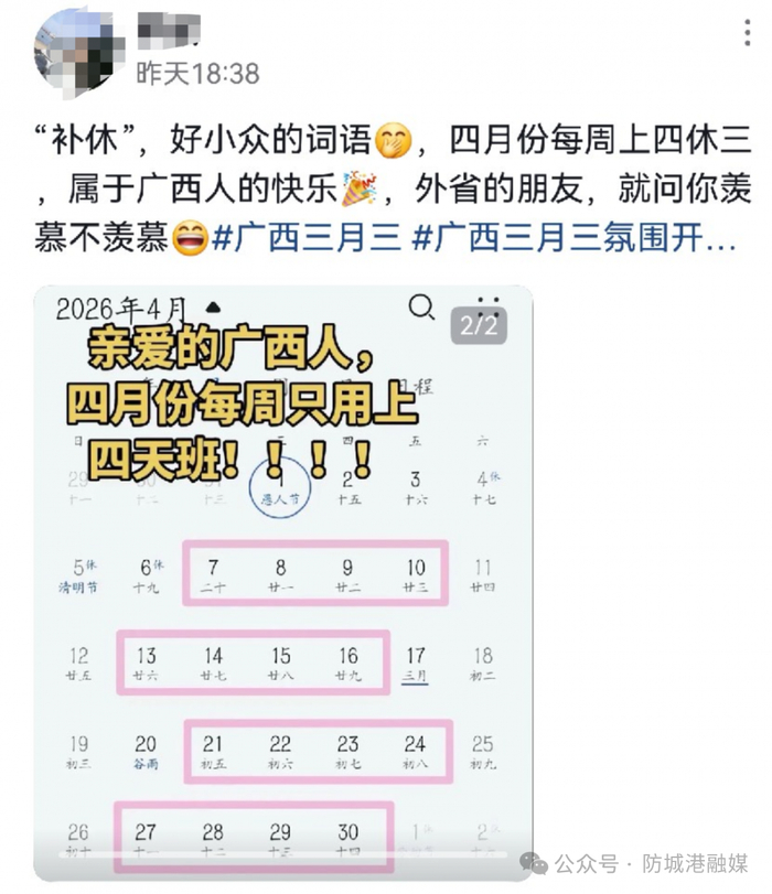 广西人整个四月都“上四休三”?消息刷屏了!