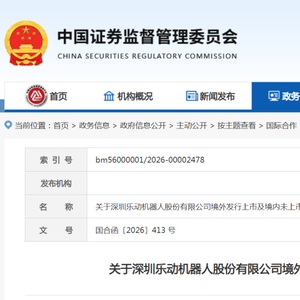 中国证监会网站发布关于深圳乐动机器人股份有限公司境外发行上市及境内未上市股份“全流通”备案通知书。乐动机器人将计划发行不超过86,250,000股境外上市普通股并在香港交易所上市。