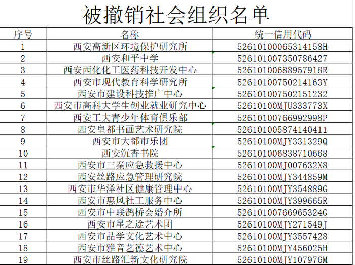西安发布行政处罚公告:45家社会组织被撤销并列入失信名单