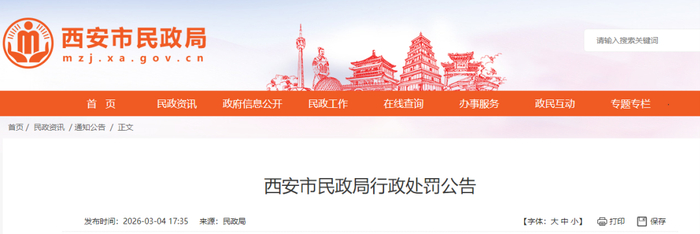 西安市民政局网站发布