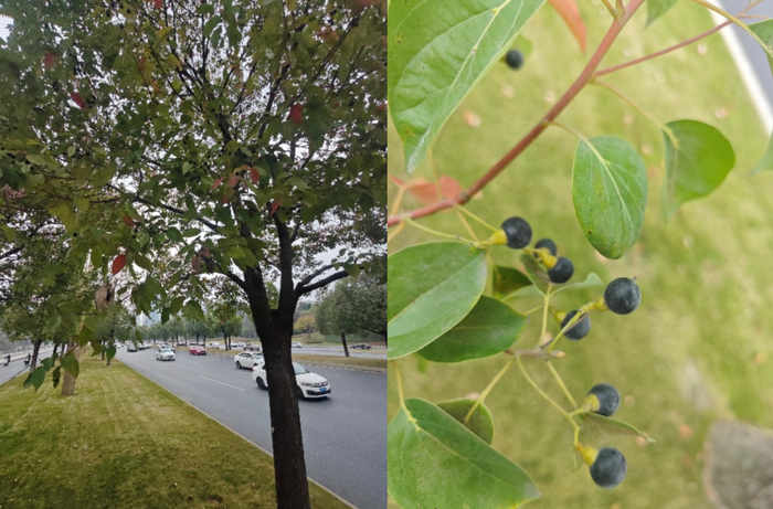 “大家好,我是你们熟悉的香樟树。这些黑色的‘小宝贝’是我的果实,是我一年一度‘春季限定款’。虽然这段时间我有点‘烦人’,但全年无休地为成都‘遮阴’、‘降噪’,我可是认真的!”