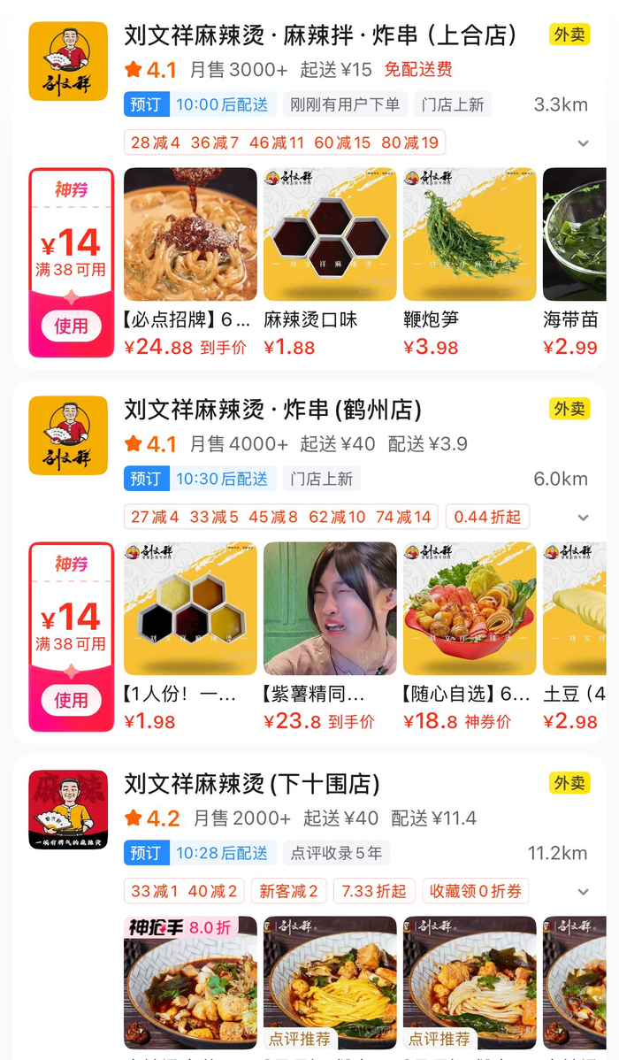 外卖平台上,刘文祥麻辣烫的品牌标识尚未统一。