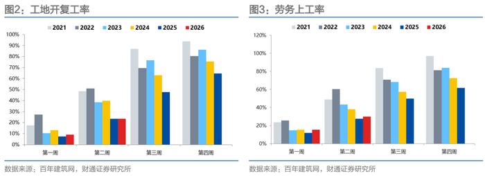 结合样本量变化和春节假期靠后因素,我们判断,今年前两周开复工的实际情况或略低于去年,后续还需要观察能否加速修复。