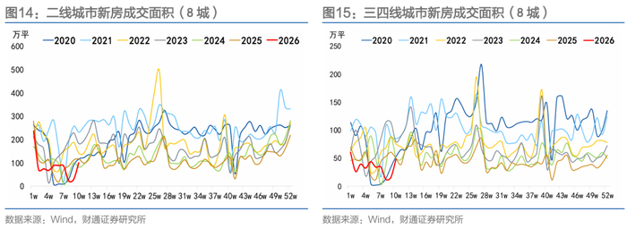 环比来看,节后第二周开复工率环比上行14.6%,低于去年的16%;劳务上工率环比上行14.2%,低于去年的15.7%。