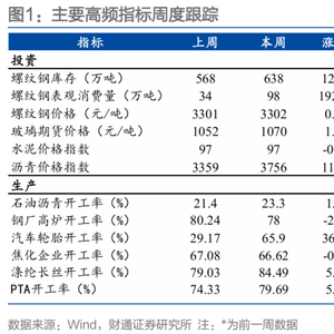 生产方面,本周开工率大多上行。石油沥青开工率、涤纶长丝开工率、PTA开工率上行,汽车轮胎开工率大幅上行,钢厂高炉开工率下行,焦化企业开工率小幅下行。