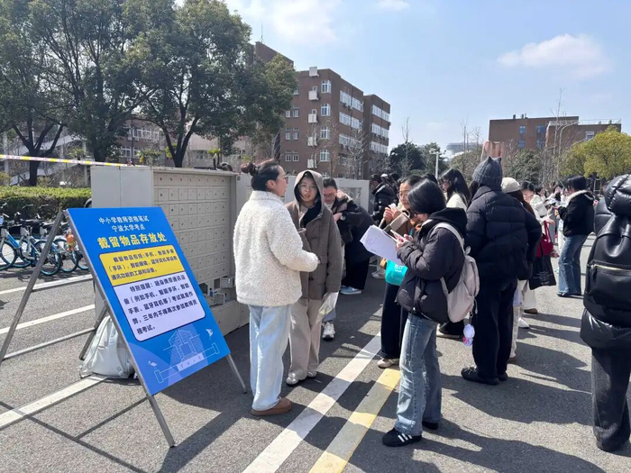 上午八点,宁波大学考点门口已汇聚起不少考生。采访中,记者发现宁波大学考点的考生,大多为社会考生。他们考证的目的,既有想当老师的理想,也有充实自己、为了孩子教育等多种不同的目的。在“教资热”的背后,我们听到的不仅是关于生存的故事,更是关于转型、家庭与自我增值的多重奏。