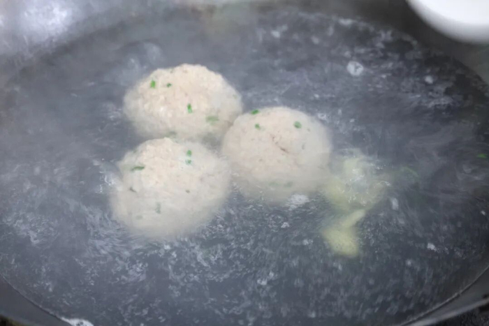 4.锅内加水,水沸后放入肉圆