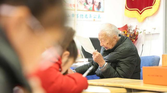中国青年报客户端讯(刘琴 中青报·中青网记者 杨宝光)3月7日,99岁安徽和县卜陈学校退休教师叶连平,迎来新学期第一课。孩子们还没到,叶连平在每张课桌上放好本子、笔和打印好的学习资料,整理妥当,静静等着孩子们到来。在和县乌江镇卜陈未成年人之家,他为6名学生义务辅导,带领大家朗读英语时,他的眼睛几乎贴在纸面上,格外专注。课堂不大,学生不多,叶老师教得格外认真。三尺讲台,一生坚守。叶连平曾先后获得第七届全国道德模范“全国助人为乐模范”“最美奋斗者”“全国优秀共产党员”称号。