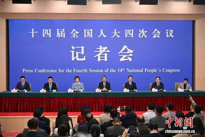 十四届全国人大四次会议于3月7日上午10时,在梅地亚中心新闻发布厅举行记者会,邀请教育部部长怀进鹏、民政部部长陆治原、人力资源和社会保障部部长王晓萍、文化和旅游部部长孙业礼、国家卫生健康委员会主任雷海潮就教育、民政、人力资源和社会保障、文旅、卫生健康等相关问题回答中外记者提问。中新社记者 田雨昊 摄