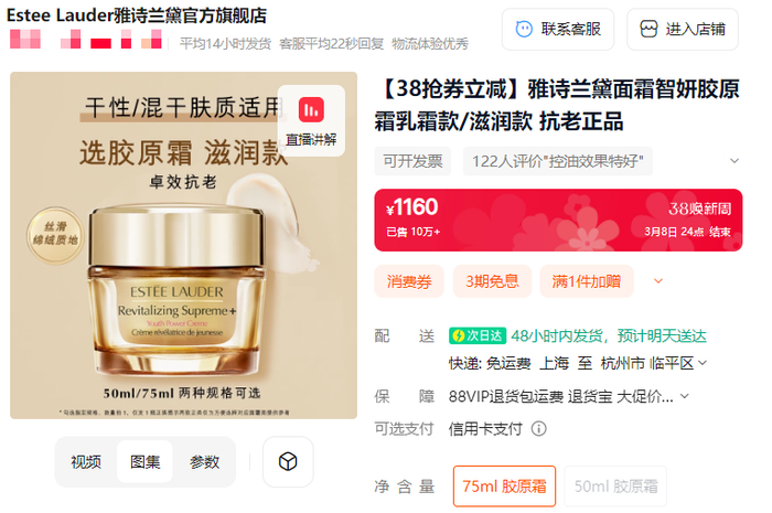 如果眼霜和精华都想拥有,雅诗兰黛【特润修复肌活】套装,更划算,八妹真心推荐👇