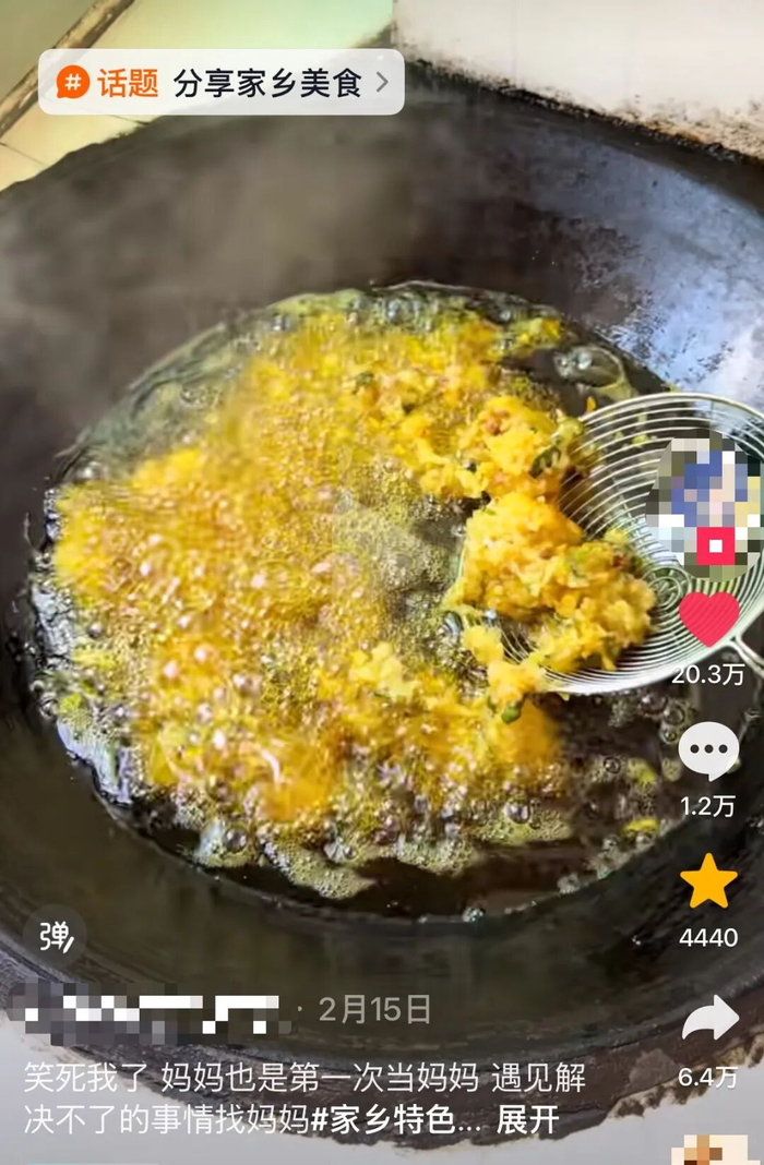 自己的妈妈在过年炸丸子时