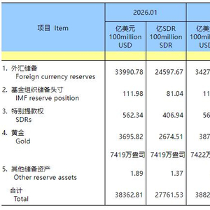 国家外汇管理局公布的最新数据显示,截至2026年2月末,我国外汇储备规模为34278亿美元,较1月末上升287亿美元,升幅为0.85%。