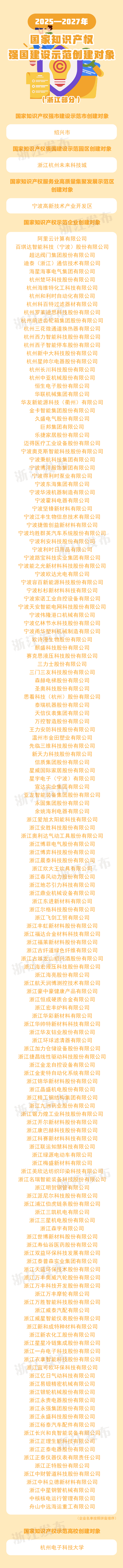 近日,国家知识产权局印发通知,确定2025—2027年国家知识产权强国建设示范创建对象,并明确将在2027年底前组织对示范创建对象进行评估验收,评估验收合格且公示无异议的将认定为示范单位,发文、授牌予以认定命名。