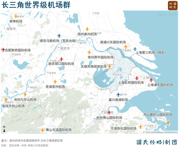 不只如此,苏州所在的长三角,已有28座民用运输机场,加上在建、规划,未来机场多达32座,密度为全国之最。