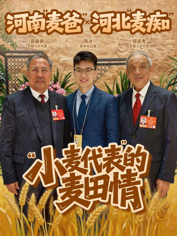 2026年全国两会,全国人大代表、河北省石家庄市农林科学研究院名誉院长郭进考和全国人大代表、河南科技学院小麦研究中心教授茹振钢又见面了。两位来自农业一线,扎根田野、深耕育种,今年再次相遇,按照约定,他们交换了新培育的小麦种子。通过跨区域协同育种,培育出产量更高、适应性更广、抗逆性更强的小麦新品种。