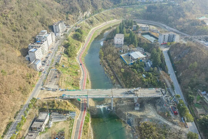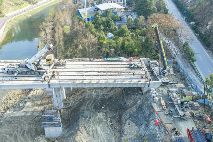 3月5日,在竹山县346国道新建霍河大桥施工现场,随着最后一片预制T梁缓缓落在桥墩上,标志着该大桥的主体工程基本竣工,整个工程正式转入桥面施工阶段,预计6月30日前具备通车条件。
