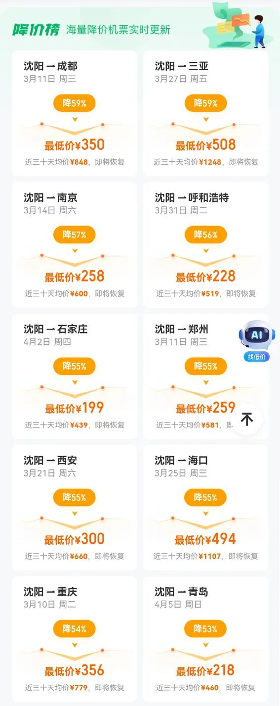 国内机票价格大幅回落!