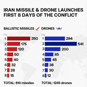 在美以联军的压倒性优势打击下,伊朗的海空力量基本已被摧毁殆尽,反击能力也被大幅削弱,在这场冲突的第7天,也就是3月6日,伊朗被监测到仅仅发射了15枚弹道导弹和12架自杀式无人机,而美以联军的空袭强度却并未出现明显下降。