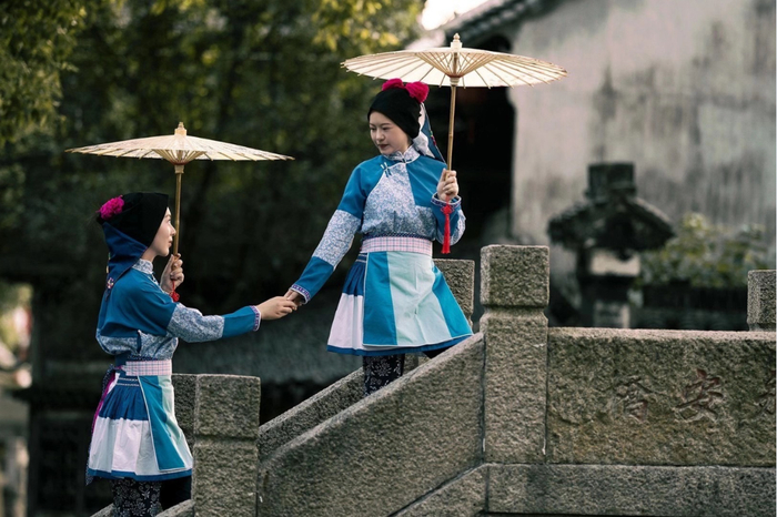 这一服饰体系适应了江南水乡稻作、渔捞等生产活动,具有遮风避雨、防晒隔热、方便劳作的功能性,同时通过色彩搭配与刺绣工艺,展现劳动妇女的审美追求,成为江南文化的重要标识。