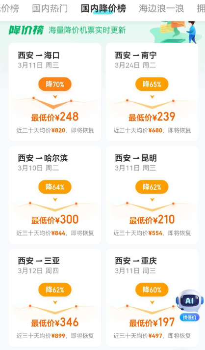 国内机票价格大幅回落!