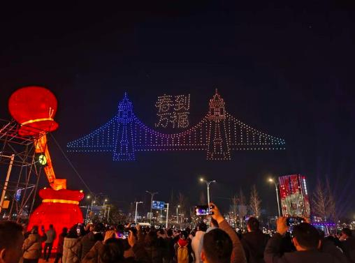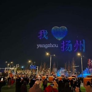 从除夕夜到元宵夜,从平山堂到生态科技新城,千架无人机一次次腾空而起,以夜空为幕、光影为墨,画出扬州地标的剪影,拼出吉祥如意的图腾,也点亮了无数人手机里的朋友圈。