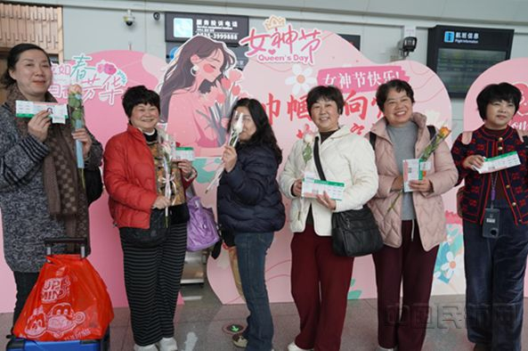 走进航站楼一楼,一面精心布置的“女神节快乐”粉色花墙瞬间映入眼帘。机场工作人员早已守候在值机大厅,手持精心包装的鲜花,为每一位远道而来的“她”送上最真挚的问候。旅客朋友们纷纷驻足,在这里领取属于自己的那一份小确幸”并合影留恋。机场还开设了女性专属安检通道,以暖心细节传递关怀,用贴心服务守护“她”的美好旅程。