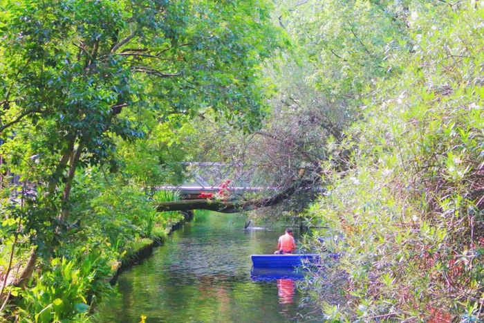 与环浜紧密相连的花溪路、棠浦路、枫桥路等历史风貌街区,通过“一街一景”改造,清除空中“蜘蛛网”,贯通滨水界面,提质微景观,融入公共艺术。如今的环浜,不仅是生态廊道,更是曹杨人的“精神地标”——红桥边的观鱼台聚满垂钓爱好者,棠浦园的长椅上坐着闲聊的邻里,健身苑里传来孩子们的欢笑声。人水相依,市井烟火与诗意风光在此交融。