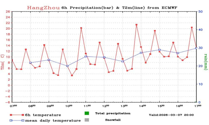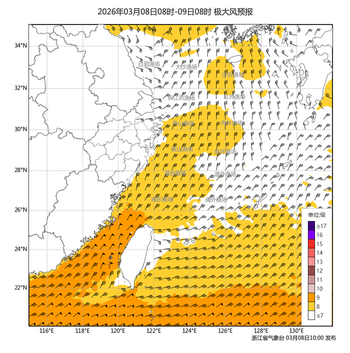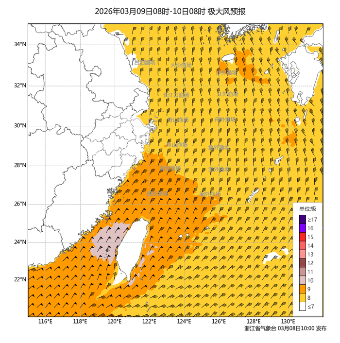 此外,也需关注冷空气带来的大风,明天下午起我省风力逐渐增大,其中内陆地区增大至5-7级,浙江沿海海面增大至8-9级,过往船只需注意大风影响,做好防范!