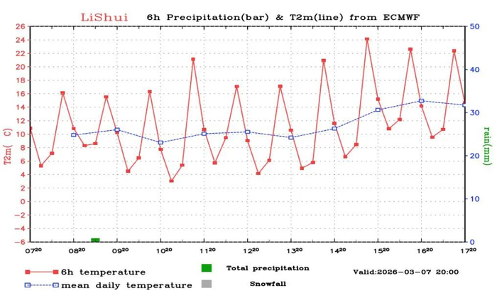 没有了慷慨的阳光,气温爬升很慢,10时全省大部相比早晨的最低气温并没有爬升多少,尤其是浙中北地区,大部还在10℃以下。