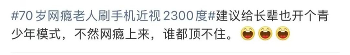 70多岁“网瘾老人”每天睁眼刷手机到凌晨,近视2300度!网友:建议给老人也开个青少年模式