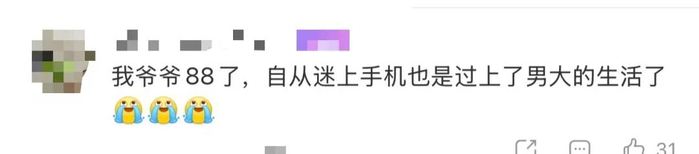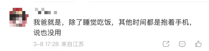 网友纷纷表示,自己家老人也存在沉迷刷手机的情况,还有人说“建议给老人手机也开个青少年模式”——