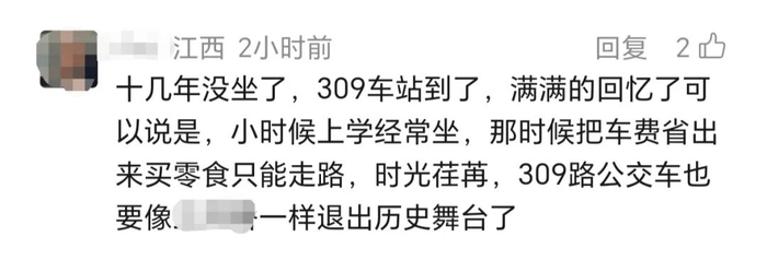 关于309路的停运,不少网友纷纷留言表示怀念。