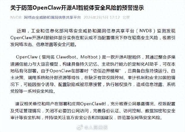 重要提醒!工信部提示OpenClaw安全隐患