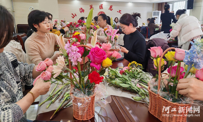 为舒缓女职工工作压力,丰富精神文化生活,3月5日,秦皇岛市山海关区总工会开展“与花相伴 温暖同行”女职工插花主题活动,来自全区各单位的40余名女工干部欢聚一堂,共赴花艺之约。
