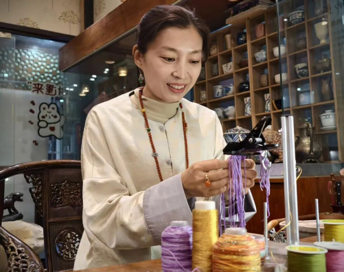 杜丽霞老师说:“编绳是对古老手艺的传承。我们用编一根绳的时间,让心静下来。一线一结,皆为祝福;一绳一饰,皆是故事。希望学员们可以和我一起编织时光里的温度。”