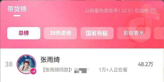 值得注意的是,张雨绮直播间观众超过1万人,她的带货销量排在带货总榜第三十八名。也有不少网友发文表示抵制其复播带货,希望她可以正面回应此前的舆论风波