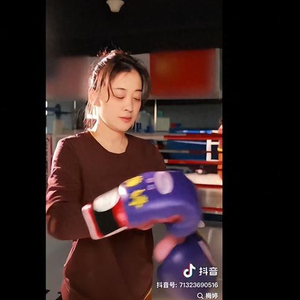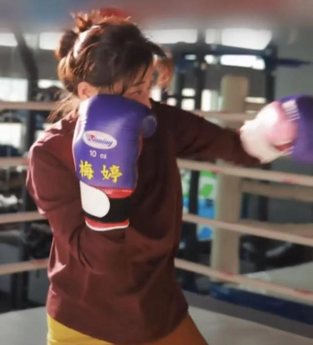 画面一转,她来到拳击台边,缠上腕带、戴上手套。