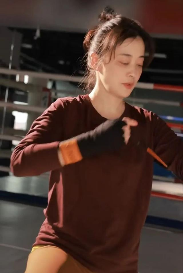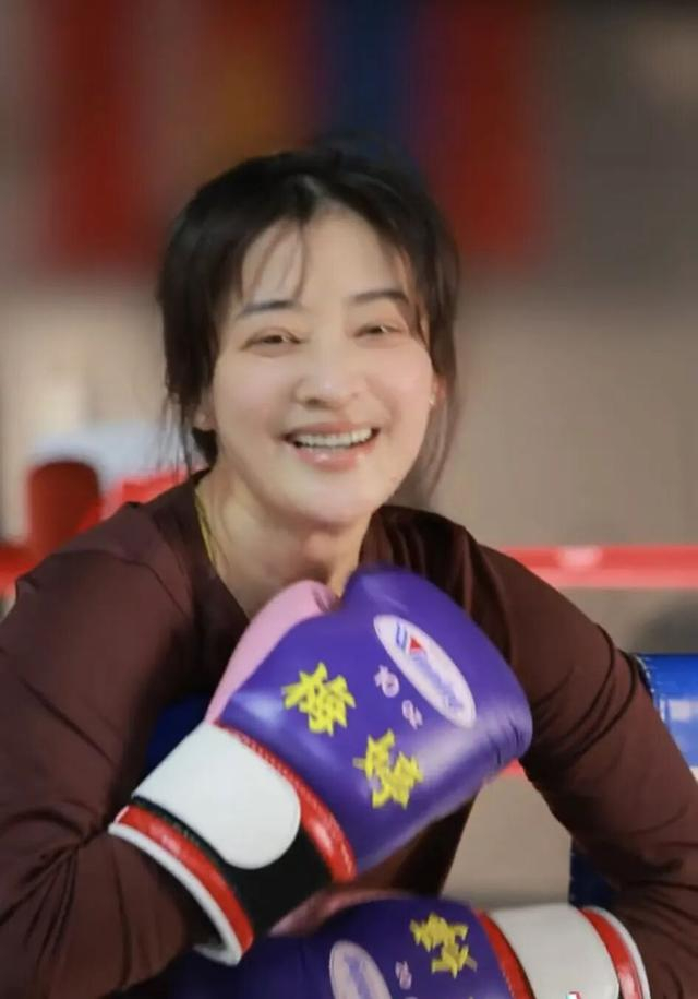 随后,她登上拳击台,眼神犀利、气场全开,用力挥舞拳头。