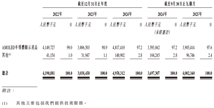 和辉光电的收入主要来自销售AMOLED半导体显示产品,另外一小部分收入来自包括提供技术服务等其他业务板块。