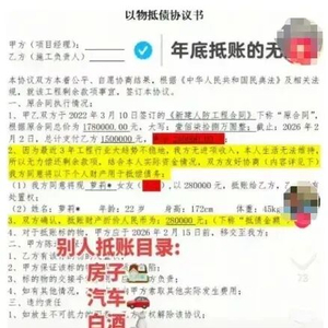 建筑行业这几年的以物抵债见过不少。抵房子抵车子抵设备,甚至抵建材抵混凝土的都有。但拿人抵债的,还真是头一回见。