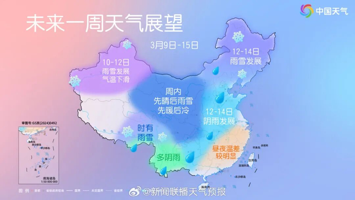 3月9日(周一):多云;6-12℃;东北到北风5-6级阵风7级,下午增强到6级阵风7-8级,半夜起5-6级阵风7级。