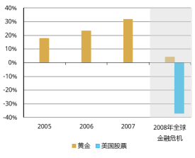 全球金融危机前及期间的年度黄金回报9a