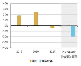 2022年通胀冲击引发回调前及期间的年度黄金回报9b