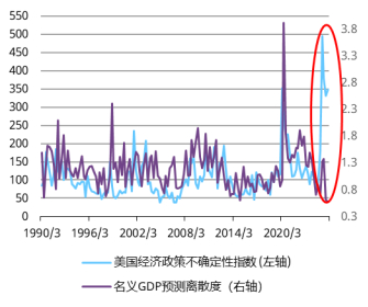 美国经济政策不确定性指数与名义GDP预测离散度5